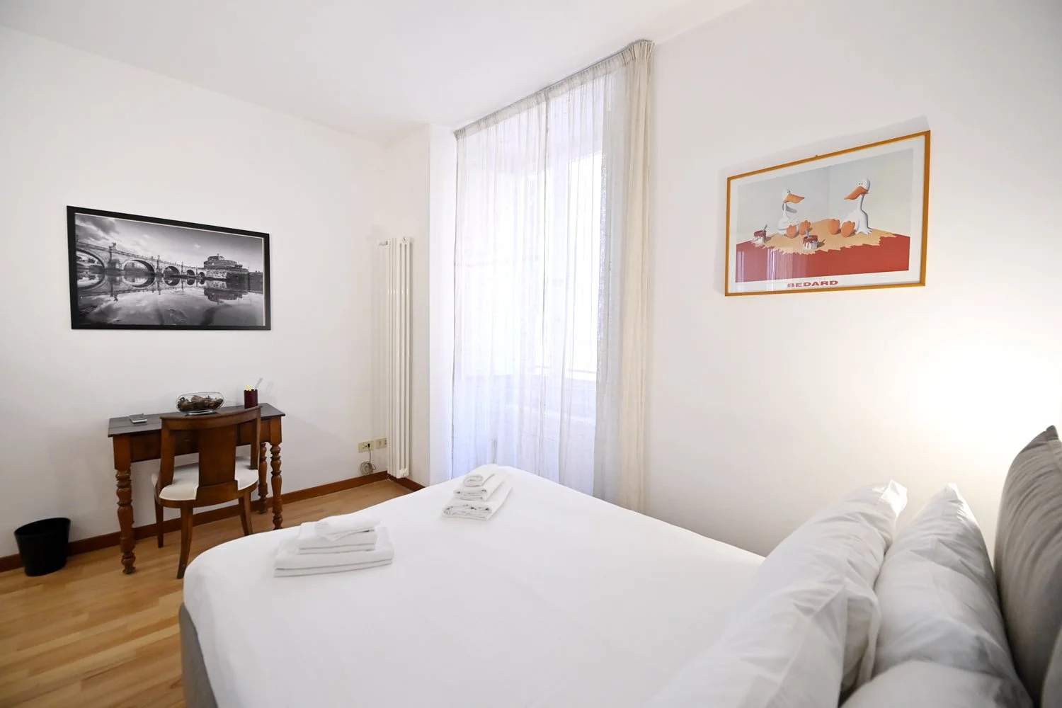 Located in Rome’s historical center, this quiet apartment is in a strategic position to visit the Eternal City. Major city’s touristic and iconic sites can be reached with a pleasant walk through charming center alleys and streets. Imperial Fora, Colosseum, Piazza Venezia, Trevi Fountain, Spanish Steps and Pantheon are all within a 20 minutes walking radius. Ideal for a family or two couples, can accomodate up to 4 guests.