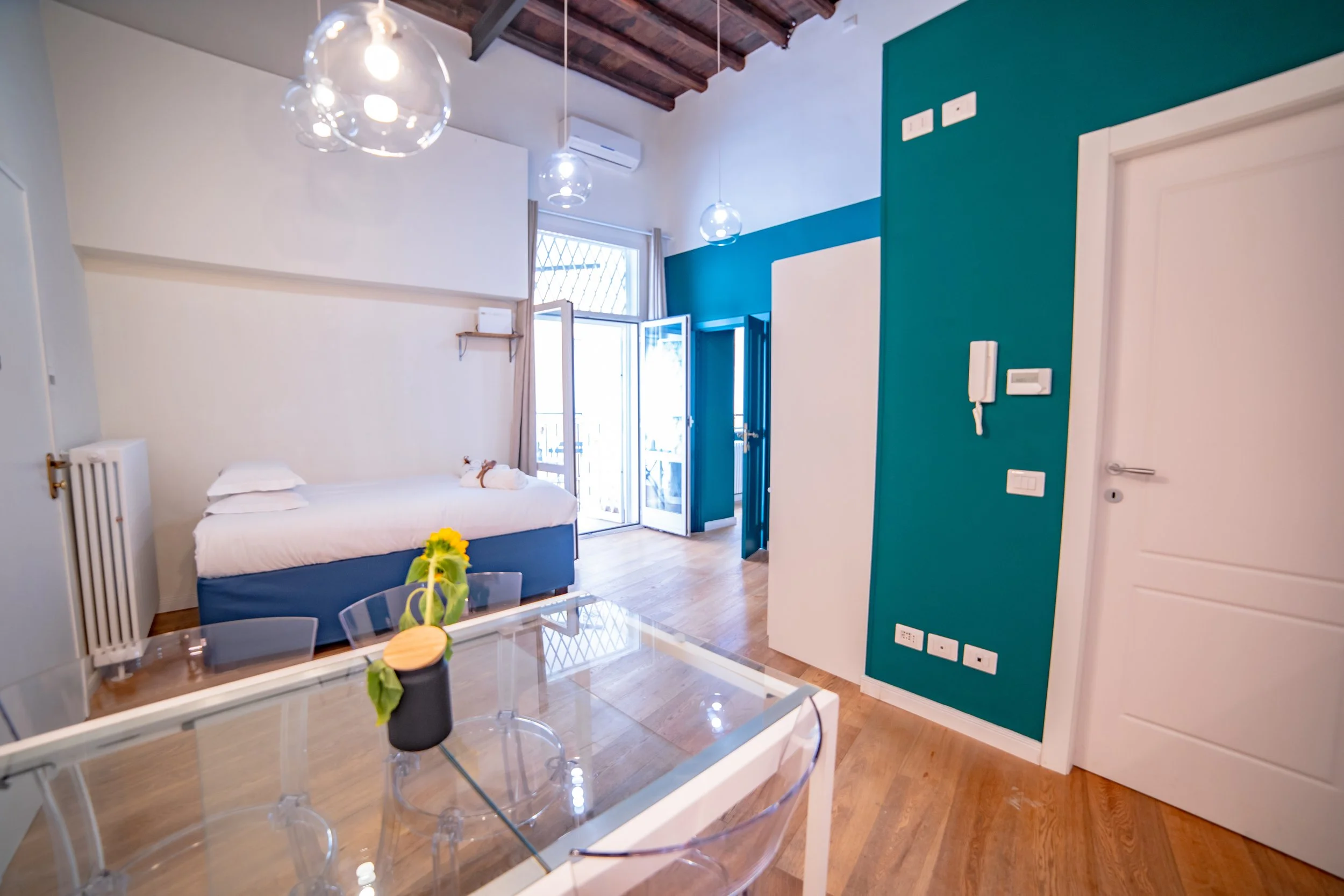 Located in Rome’s historical center, this stunning apartment is in a strategic position to visit the Eternal City. Major city’s touristic and iconic sites can be reached with a pleasant few minutes walk through charming center alleys and streets: Piazza Navona or Campo de' Fiori, Pantheon, St. Peter Basilica in Vatican, Trevi Fountain and Spanish Steps. This awesome apartment offers a perfect blend of modern comfort and classic elegance and can accommodate up to 4 guests.